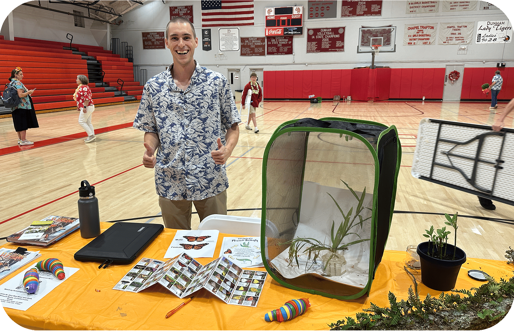 On Tuesday, I was invited to go to the local elementary school to bring in & teach the kids about my Monarch Butterflies! I am so thankful for the opportunity to share something that brings me excitement and educate the youth on a critical element of Nature…the butterflies. The students were ecstatic, asking me an array of questions ranging from how do butterflies fly to where they get their color from! We were even able to see one emerge from its chrysalis in real time! The school now started up their own Monarch butterfly raising cage and I supplied them with 3 caterpillars and some milkweed!
