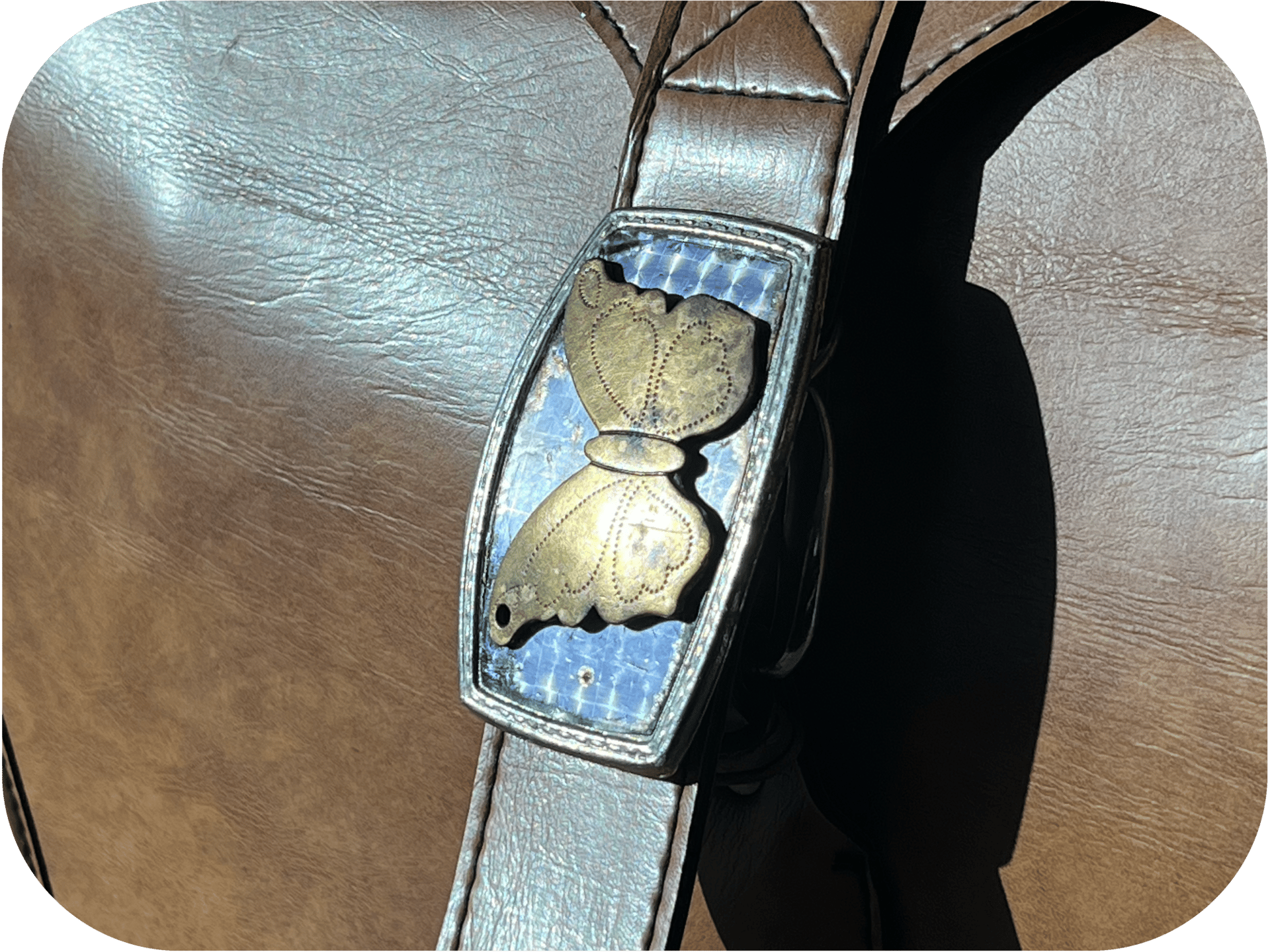 Having happened to wear a belt to breakfast that morning, I decided over a flight of flap jacks, you know what, I’m going to go get the buckle, get out my comfort zone, and wear it. With my decision made and hunger relieved, we returned to the condo to pack our suitcases and hit the road. As I was packing, I looked down at my recently acquired leather carry bag, but this time with new eyes. The pieces of the perplexing puzzle began putting themselves in place, and with a whiff of wonder, I gasped as strings of synchronicity slipped its final knots in this story. The bag, which I bought on a whim just two days earlier, was built with a belt strap that overlaps the adjoining zipper, and this belt strap has 3 belt holes in it, the exact number needed for a belt buckle. The world spun around me as if time and space joined efforts to gift me this newly embellished piece of luggage, and I understood the happening for what is was.