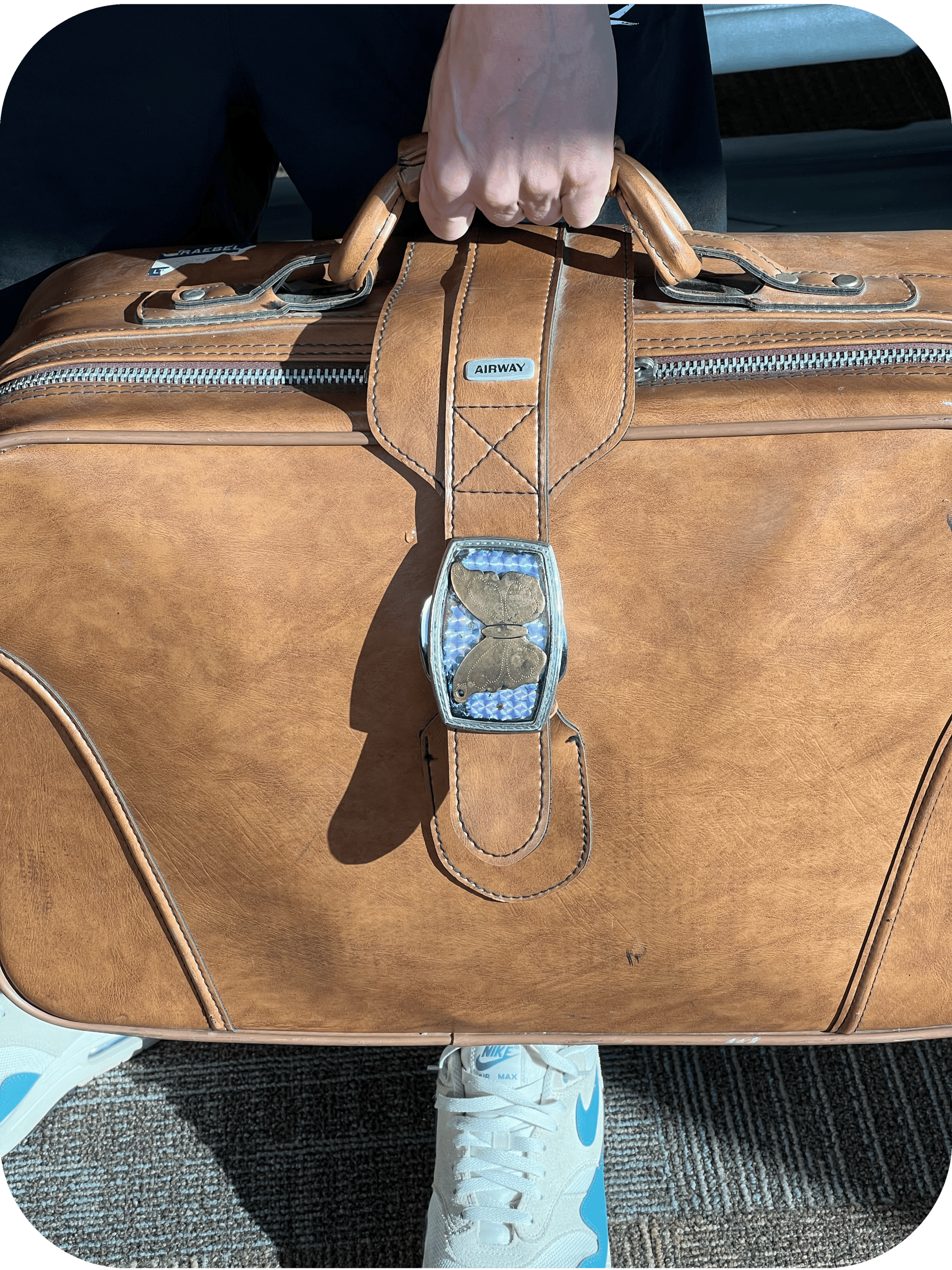 Before we left, I rushed over to the thrift store once it opened at 12pm, and walked in holding my leather luggage bag and a copy of Dr. Ross’ new book, My Butterfly Muses. Being in a rush and thinking I brought in a bag of clothes to sell him, the owner quickly dismissed me and said I’d have to come by another day to sell. Understanding his reasonable misinterpretation of my intentions, I said I was here to purchase the belt buckle & entertained him with the story. He and his partner laughed and expressed their approval and excitement for my purchase, saying that the Butterfly Belt Buckle couldn't have found a better home…almost as if it was meant to be.